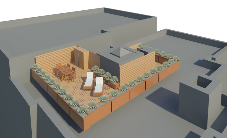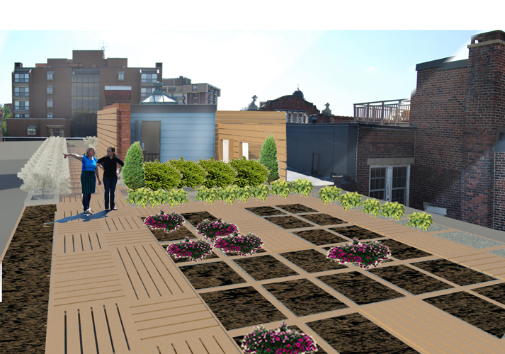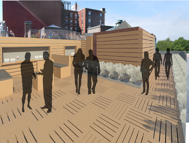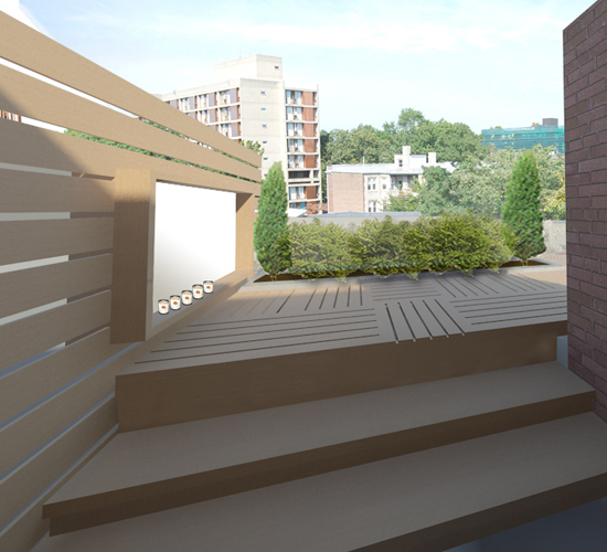 One of the most valuable commodities in urban living is outdoor space. The project goal was to reclaim an unused rooftop and create a space for both entertaining and gardening. The structure was composed of modular 2’x2’ plates which could be easily removed in order to access the roof for repairs. The garden portion was designed to utilize rain water collected from the roof, providing a growing space for the residents to cultivate vegetables and other plants. The entertainment portion of the deck sits just above the south facade and provided spectacular views of the Boston skyline, as well as the annual Boston Marathon.
