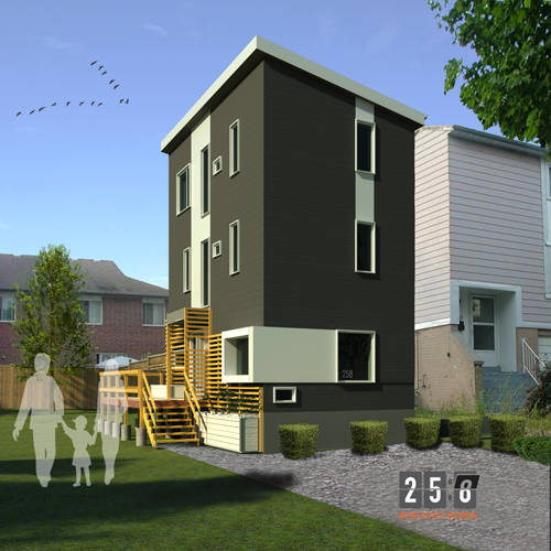Habitat for Humanity operates on a minimal budget, but that does not stop it from continuing to improve the lives of less fortunate people. When the Brampton chapter of the organization conceived of this project they wanted to make a statement that a small budget did not preclude good design. The goal was to produce a house that could improve the lives of a family and the function of an abandoned, but important, community site.
