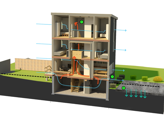 3.Environmentally Conscious: By striving for LEED Gold and Energuide 85 Rating, as well as improving the community environment.
