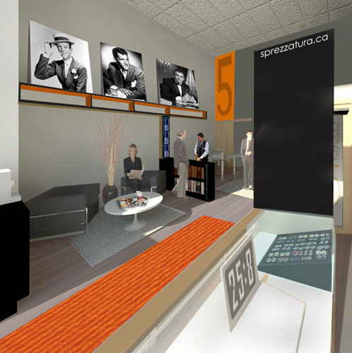 Located in the heart of the Toronto Financial district, Sprezzatura Custom Clothiers is a small bespoke tailor shop catering to urban professionals. The objective was to design an inviting and functional selling space that would provide a luxurious, sleek and sophisticated atmosphere befitting the clientele.