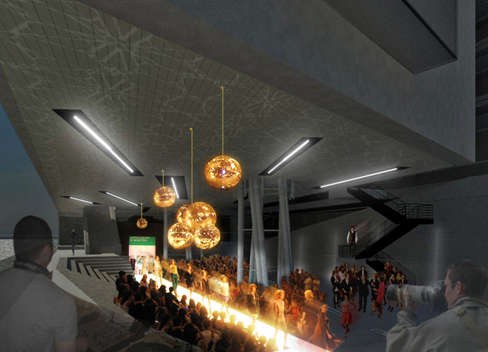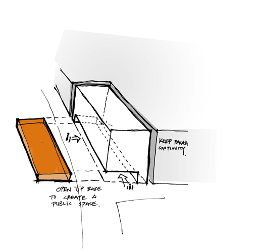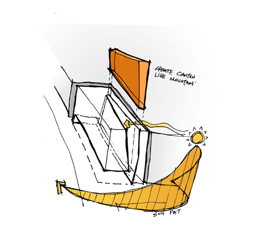 The design is derived from culture, geography and the analogous relationship between architecture and fashion. The vast landscape of the city is woven with the course grain of architecture. Construction is applied to the landscape incrementally, building the urban fabric. Like fashion, each new building must address its context in time, climate, politics and society. Architecture, like fashion in its most sincere form, successfully negotiates the dual roles of providing a concealing protection while simultaneously revealing the nature of the underlying form. As clothing responds to the body, so too must the form of the building relate to the landscape. In this way, the building itself becomes an extension and enhancement of the natural environment.